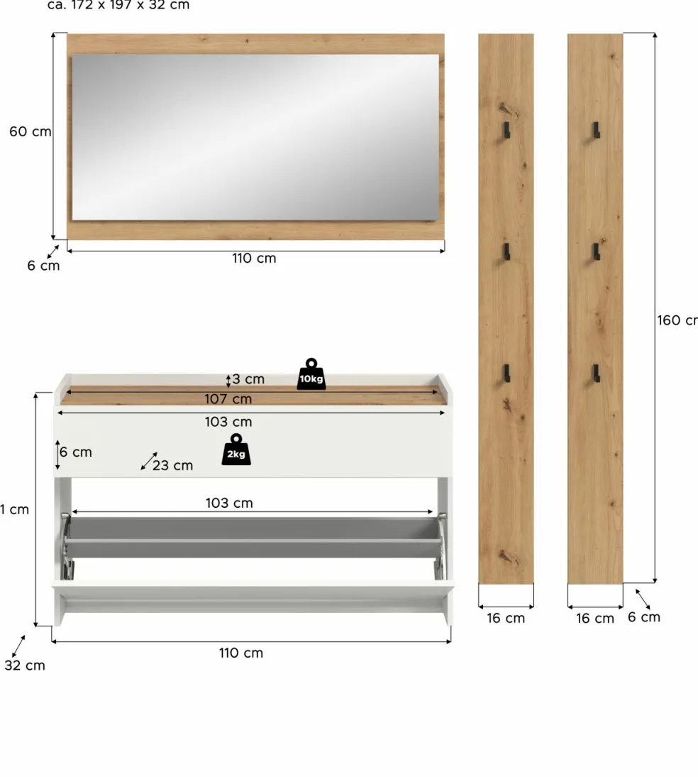 | Meubles à chaussures | 110 | 61 | 32 |