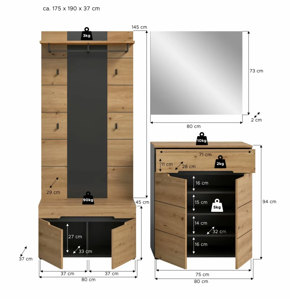 | Meuble à chaussures | 80 | 94 | 37 |