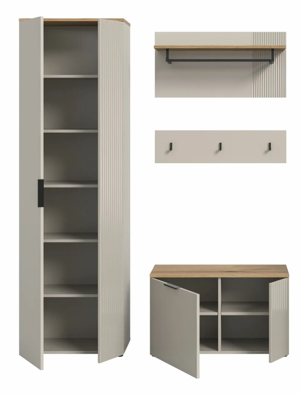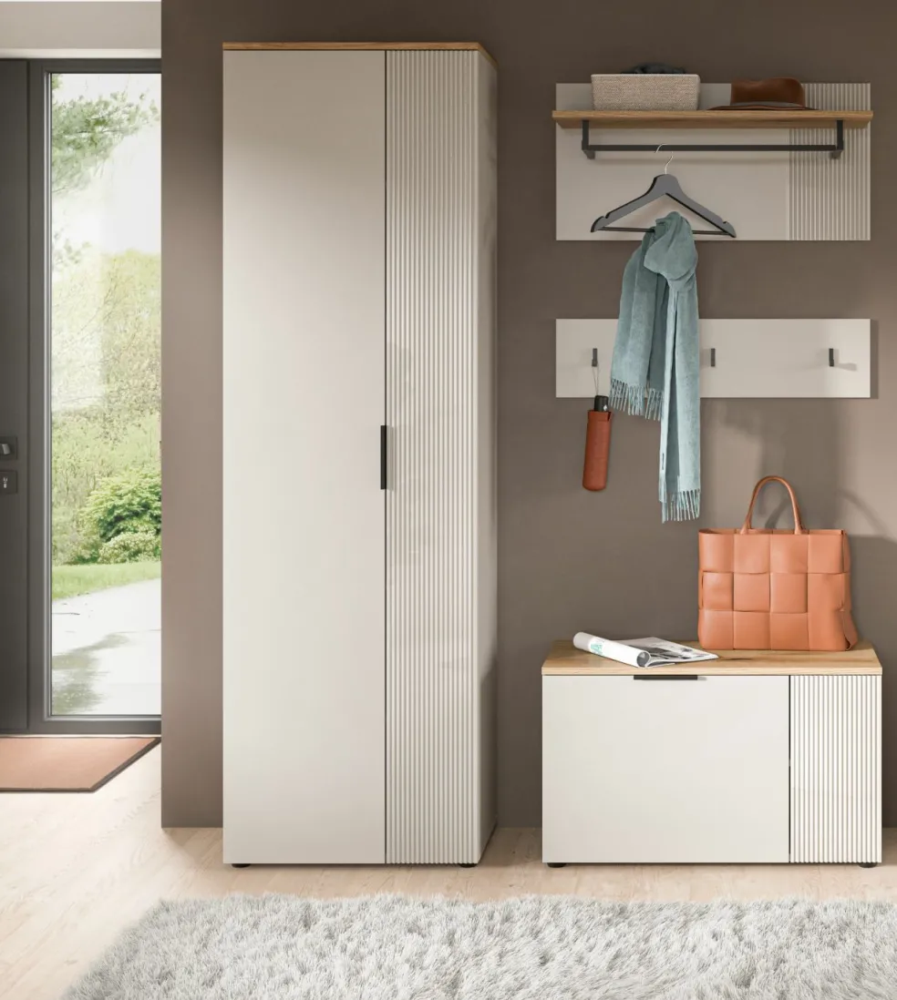 1 armoire d’entrée avec 2 portes et 5 tablettes amovibles