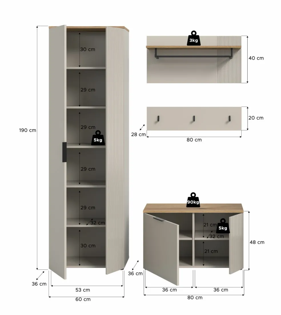 | Armoire d’entrée | 60 | 190 | 36 |
