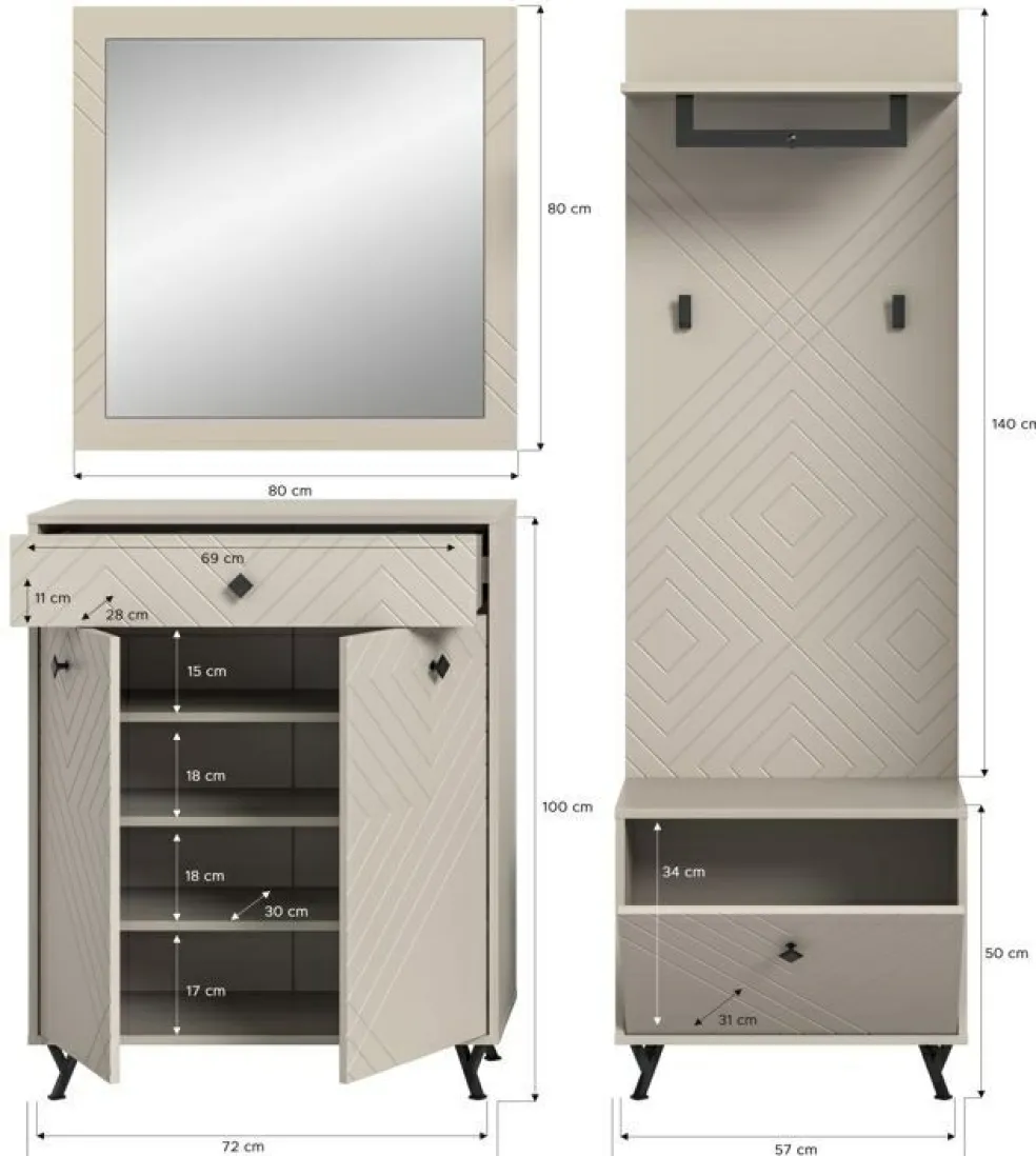 1 meuble à chaussures avec 1 tiroir, 2 portes et 3 tablettes amovibles