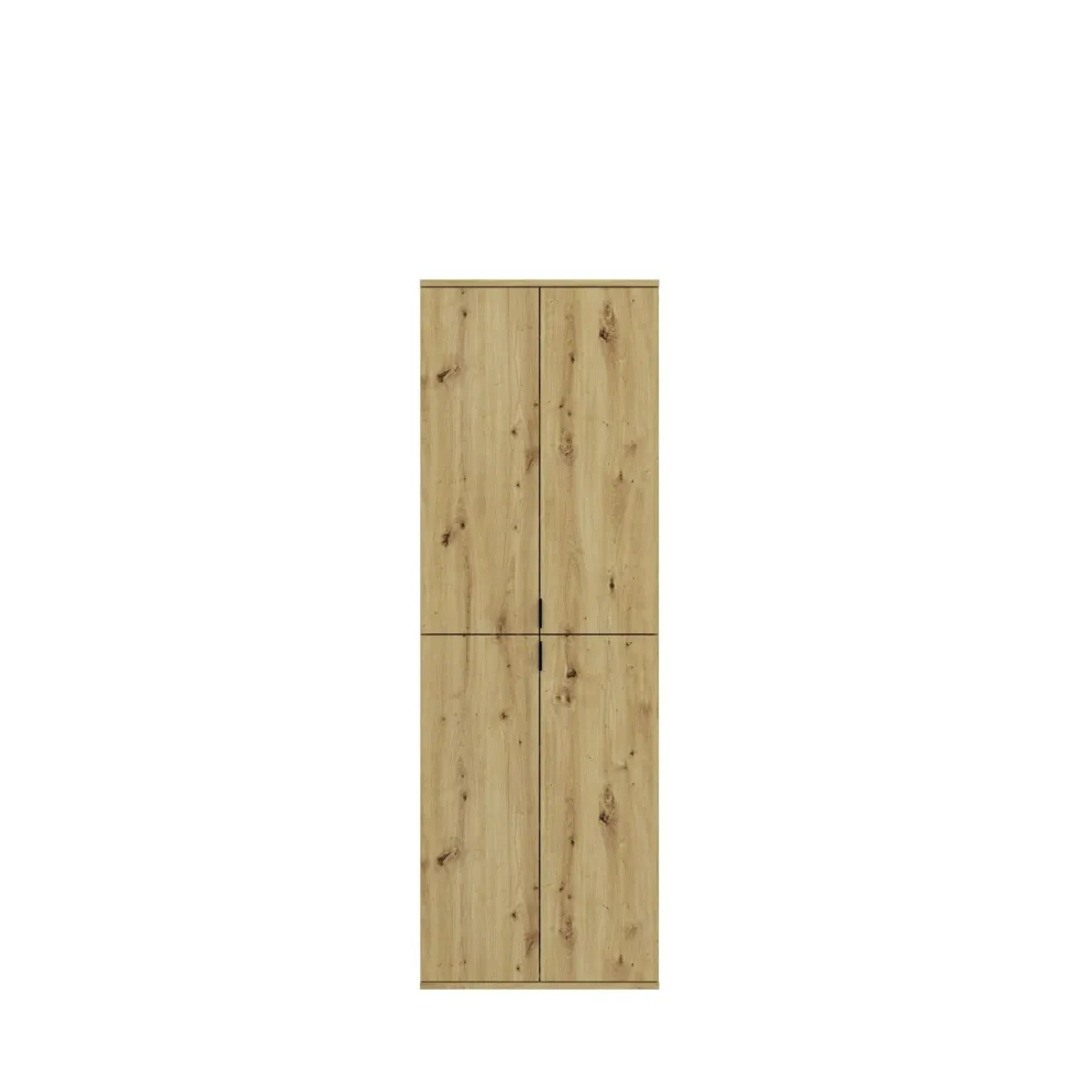 1 armoire d’entrée comprenant 2 portes décor chêne Artisan, 7 tablettes amovibles, 1 tablette fixe et 1 barre de penderie