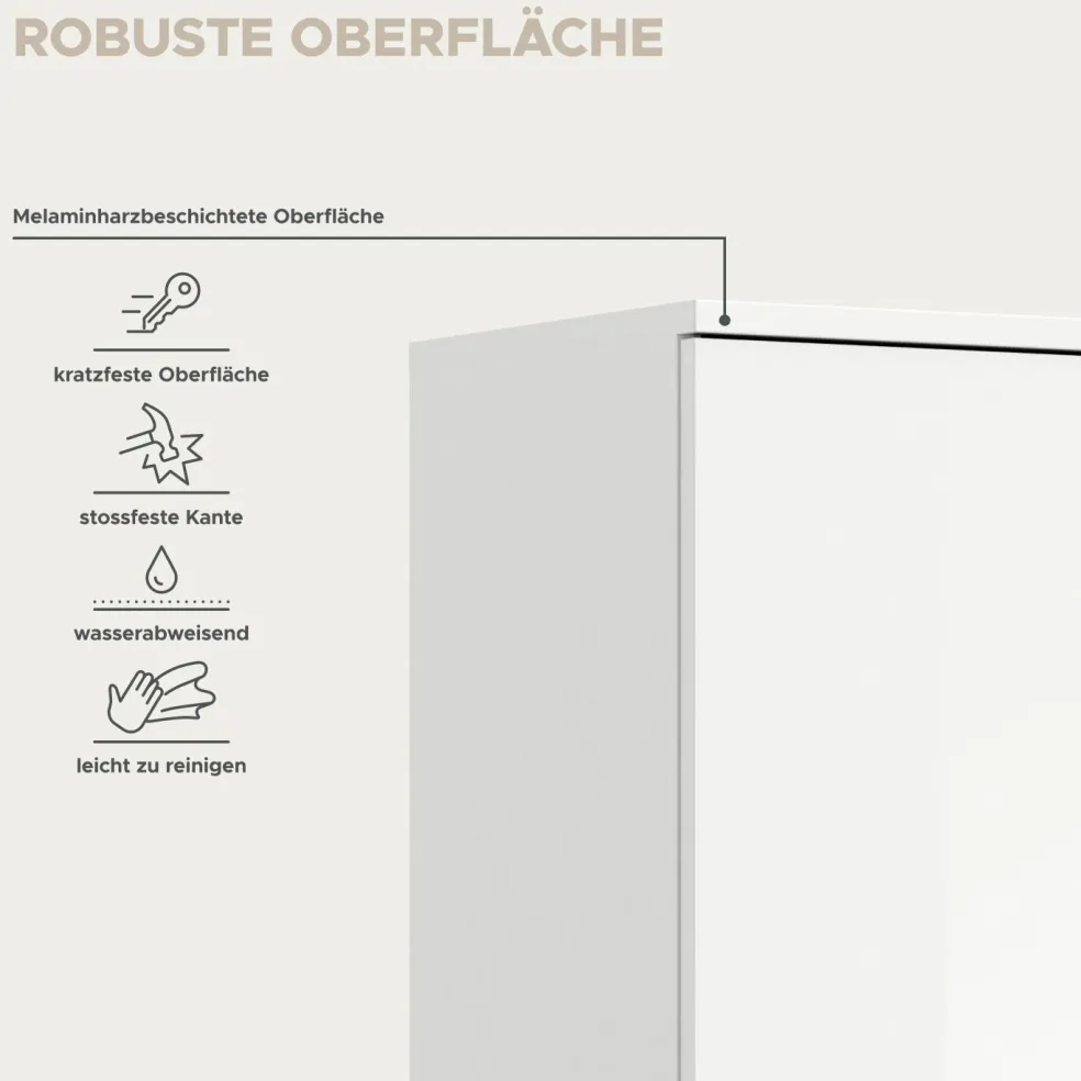 1 meuble colonne avec 1 porte, 4 tablettes amovibles et 1 tablette fixe