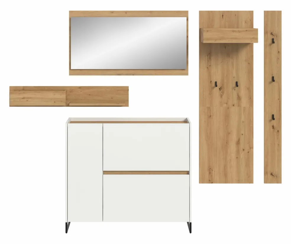 Façade: ton blanc et décor chêne Artisan / miroir
