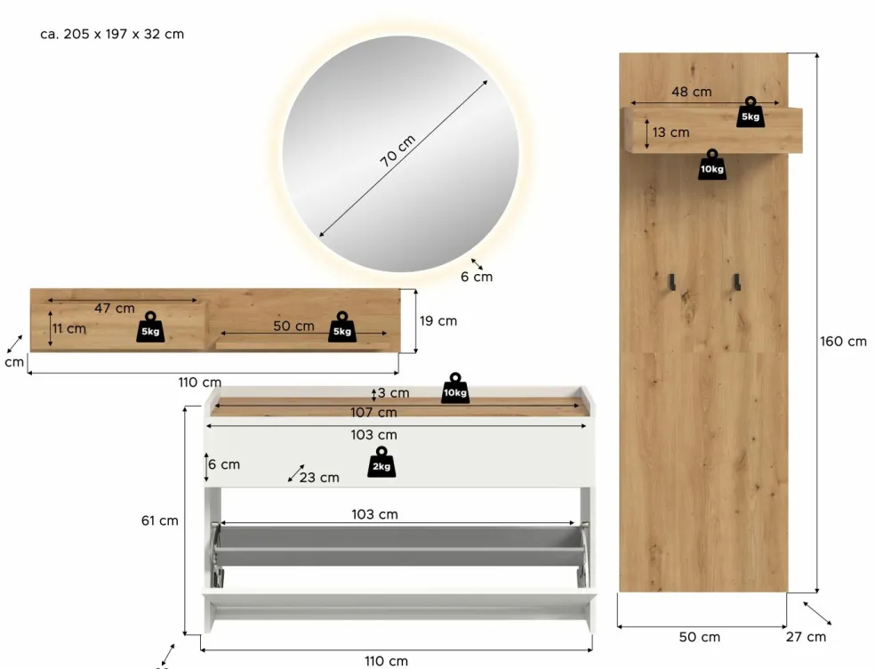 | Dimensions : | L/H/P env. 205/197/32 cm | ||