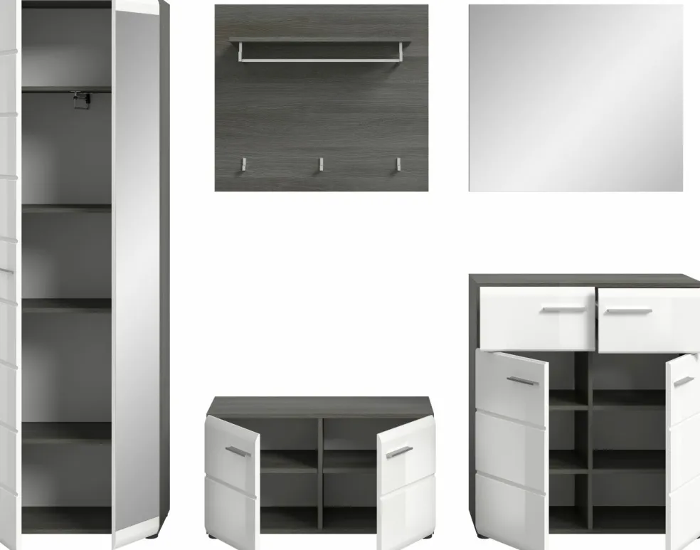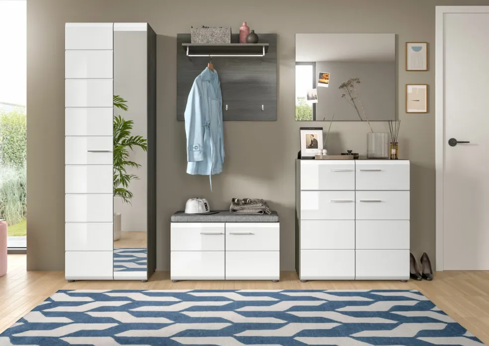 1 armoire d’entrée avec 2 portes (dont 1 porte avec miroir) et 4 tablettes