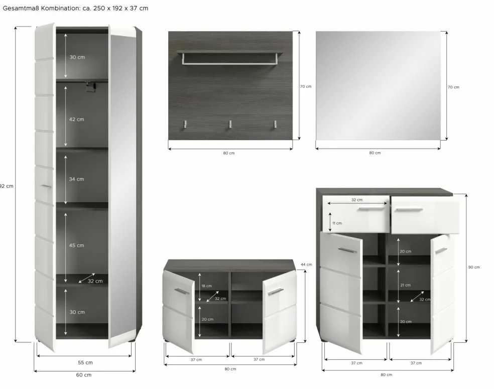 | Dimensions : | L/H/P env. 250/192/37 cm | ||