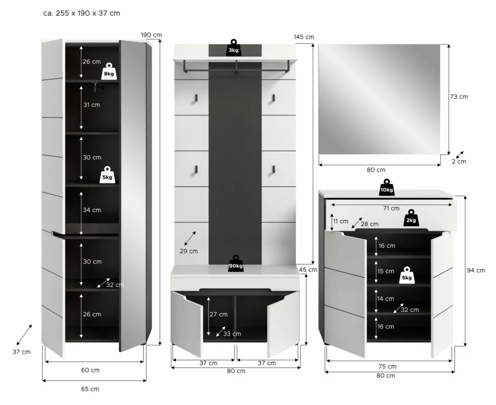 | Armoire d’entrée | 65 | 190 | 37 |