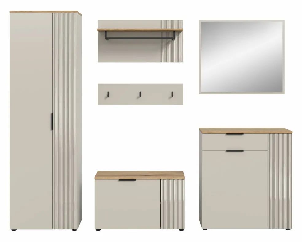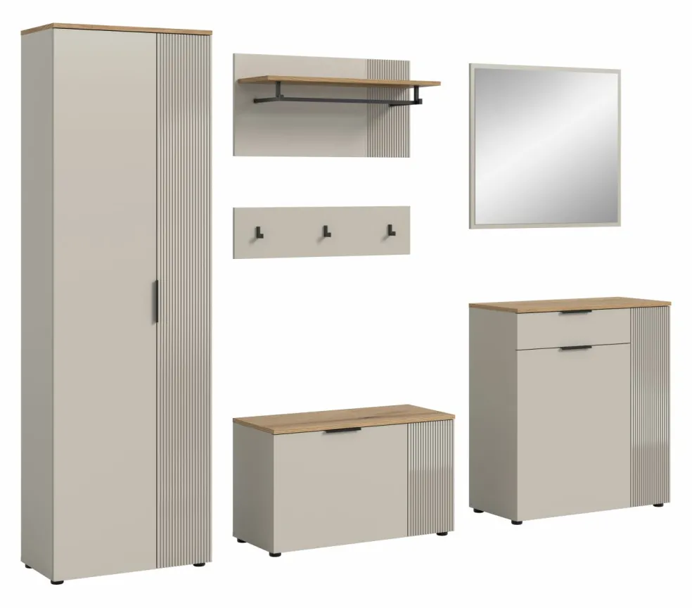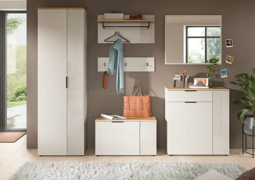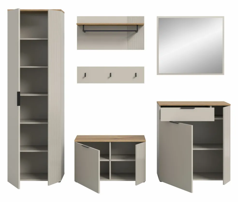 1 armoire d’entrée avec 2 portes et 5 tablettes amovibles