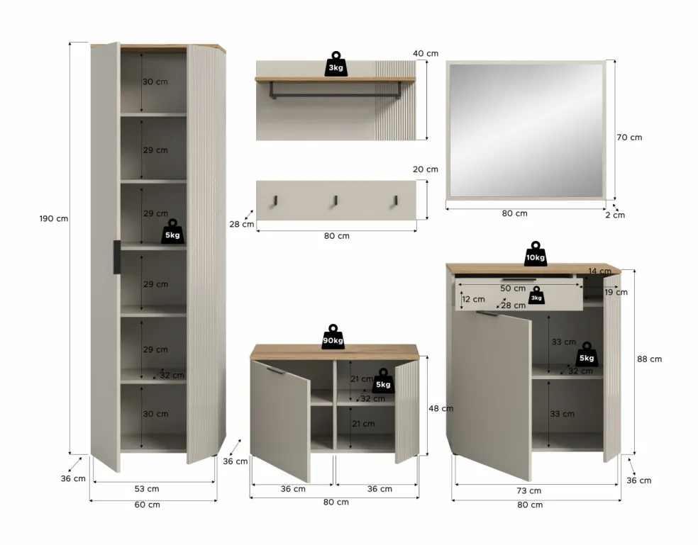 | Panneau portemanteau avec 1 barre de penderie | 80 | 40 | 28 |