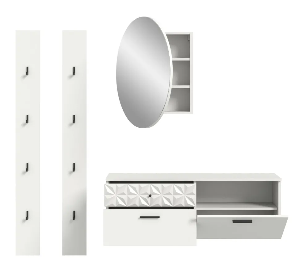 1 miroir avec 1 porte et 1 tablette amovible