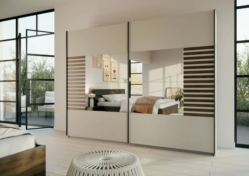 2 portes avec façades partiellement miroir