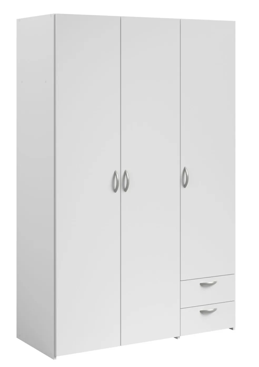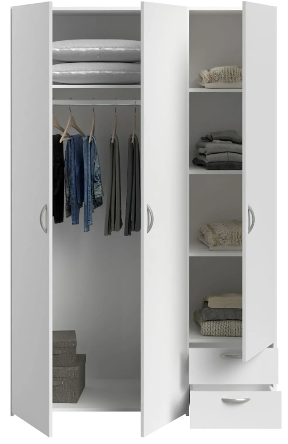 Àgauche: 2 grandes portes avec, derrière elles, 1 casier et 1 barre de penderie