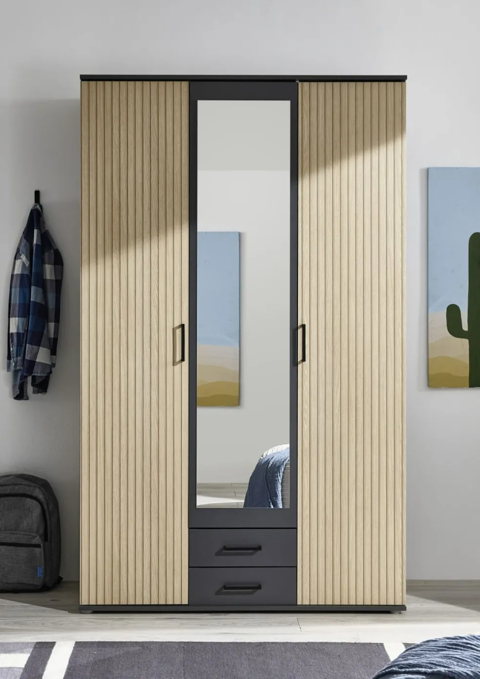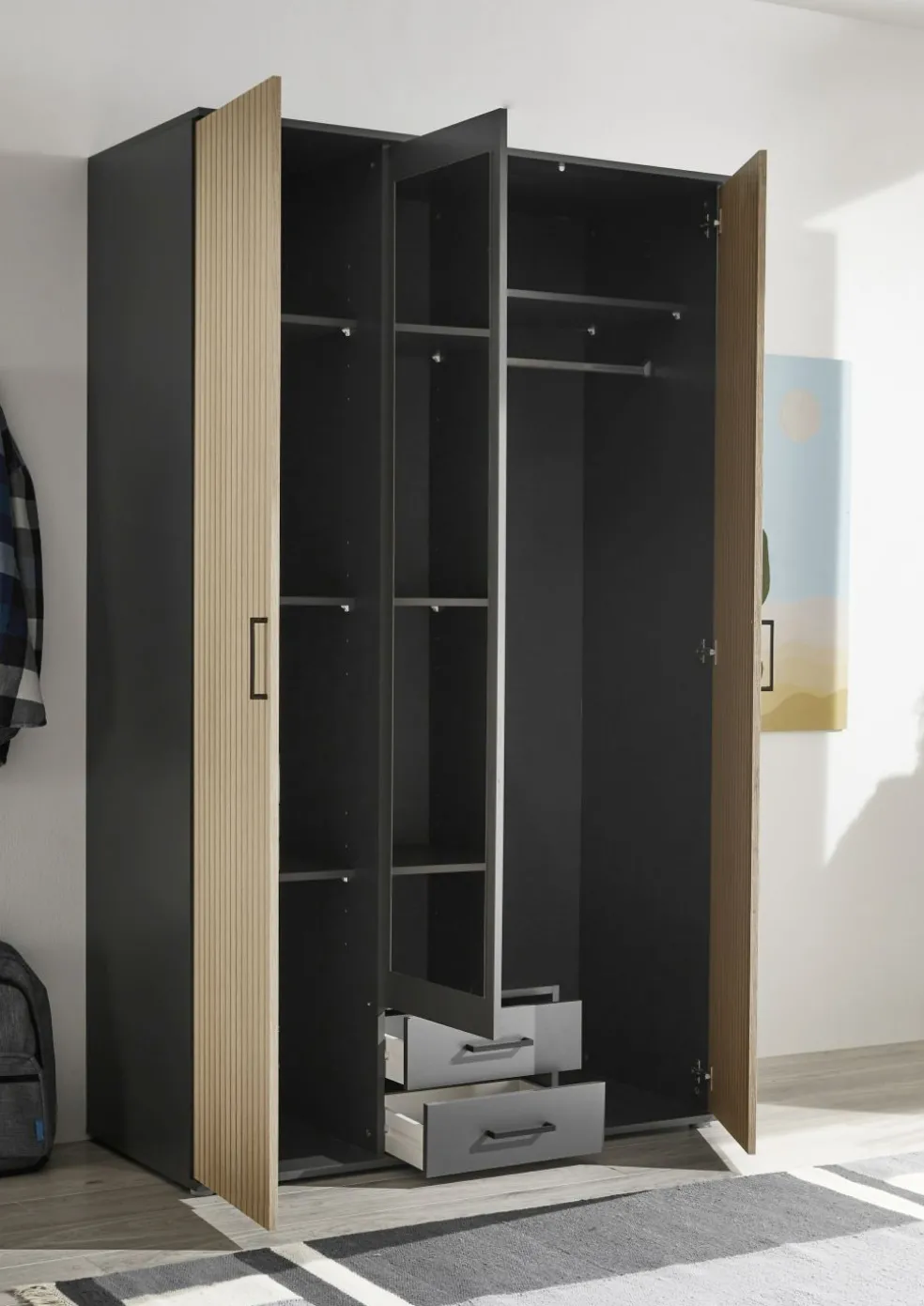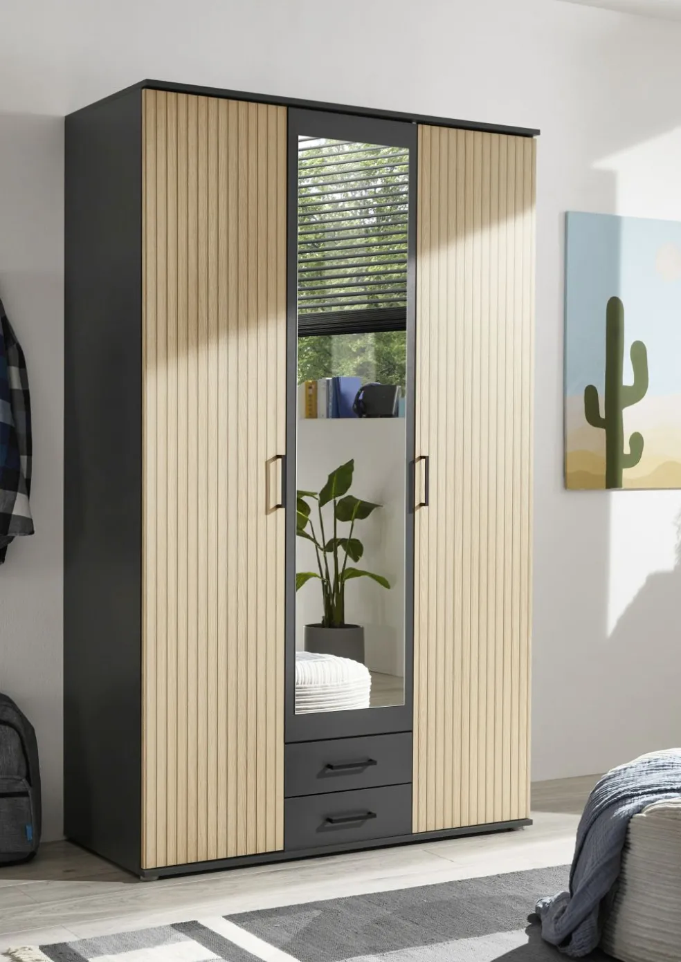 Ton graphite avec façadedeportedécor lamelles de chêne, revêtement mélaminé / miroir