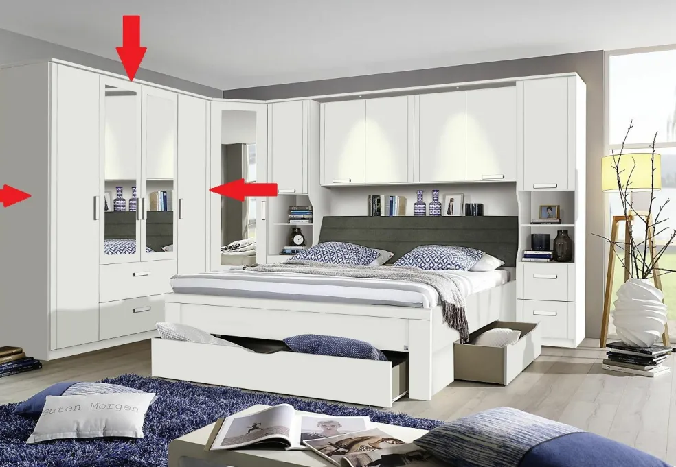 sans décoration / armoire de lit / armoire d’angle / lit / tiroirs de lit