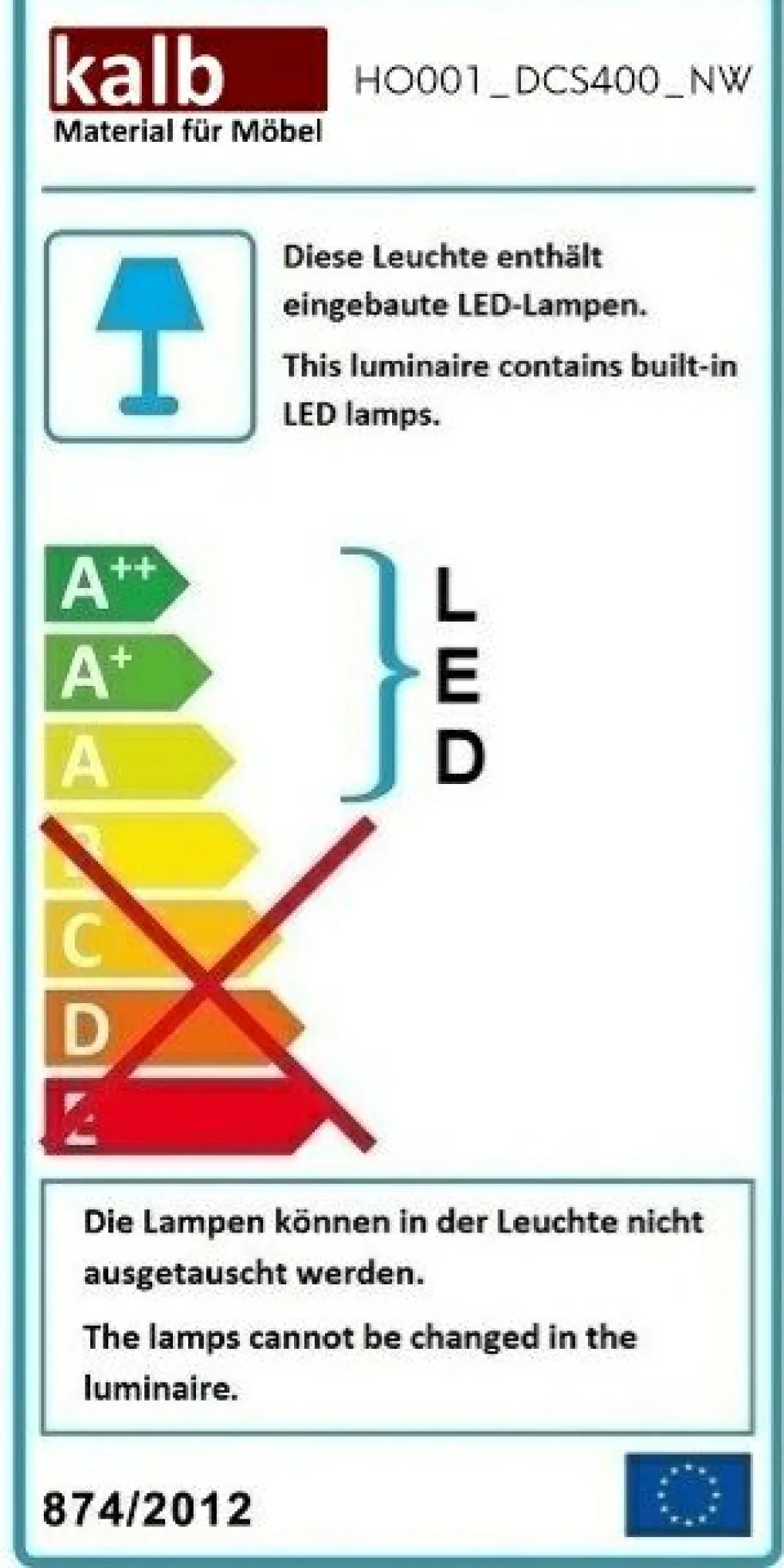 1 lampe LED env. 6 W.,4000 Kelvin, 400 Lumen