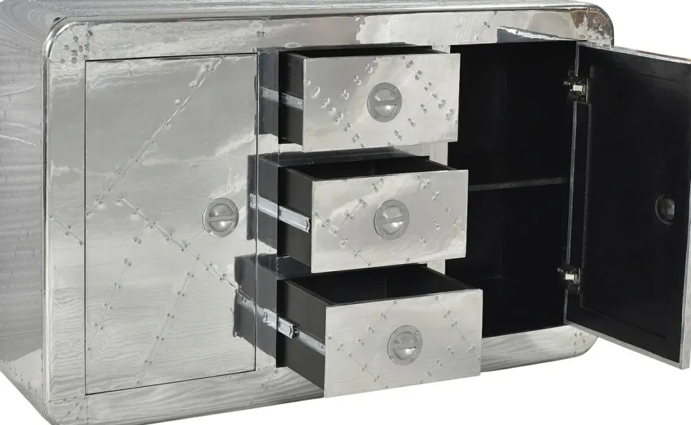 bois de manguier massif (Inde) avec MDF (panneau de fibres de bois de densité moyenne) et ferrures en alu ton argent