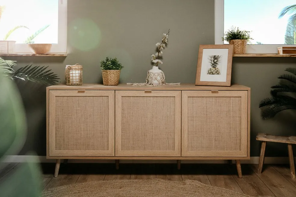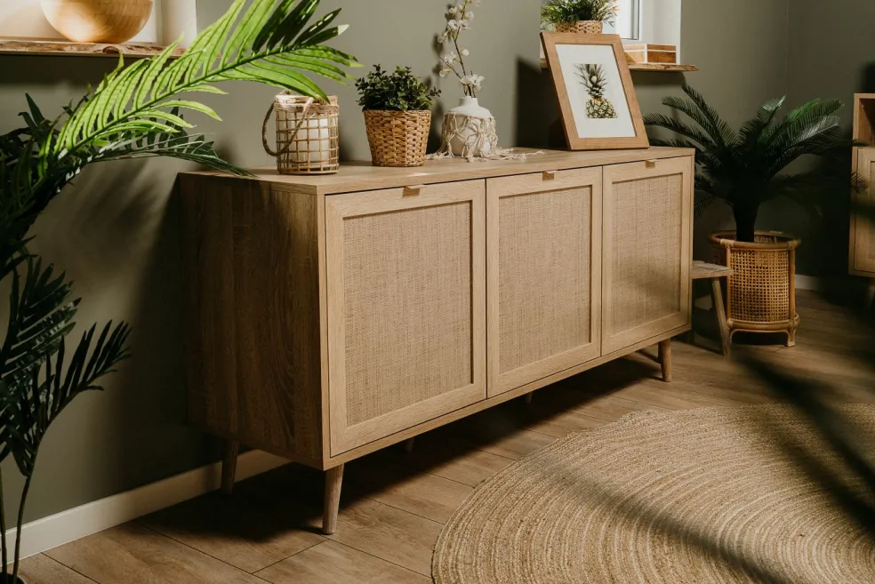 Décor chêne Sonoma / motif imprimé raphia tressé
