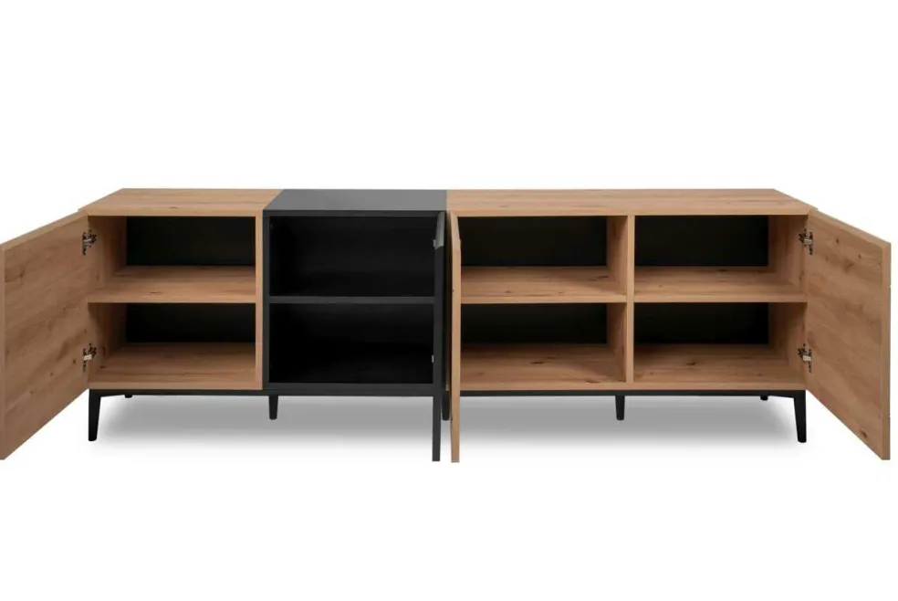 4 grandes portes avec, derrière chacune d’elles, 1 tablette amovible