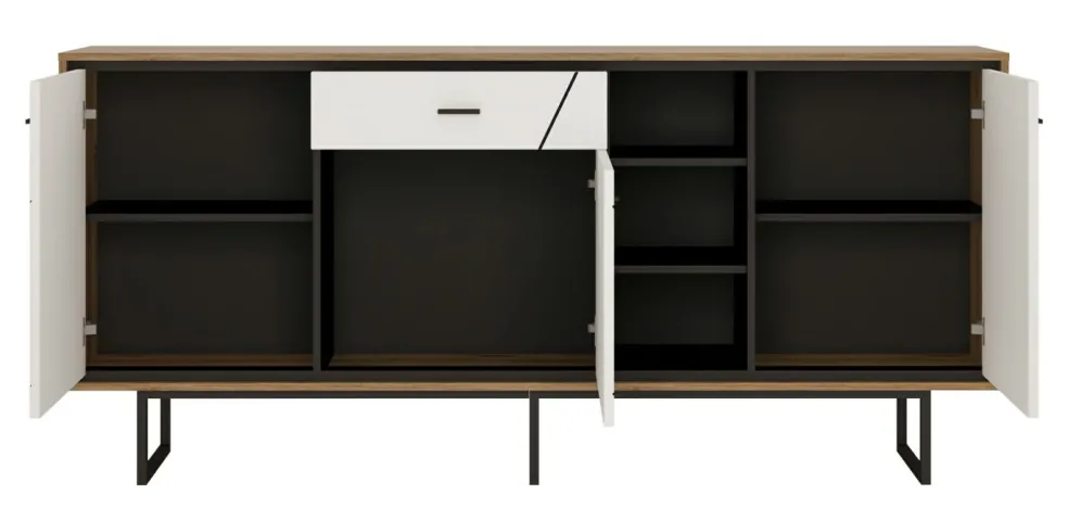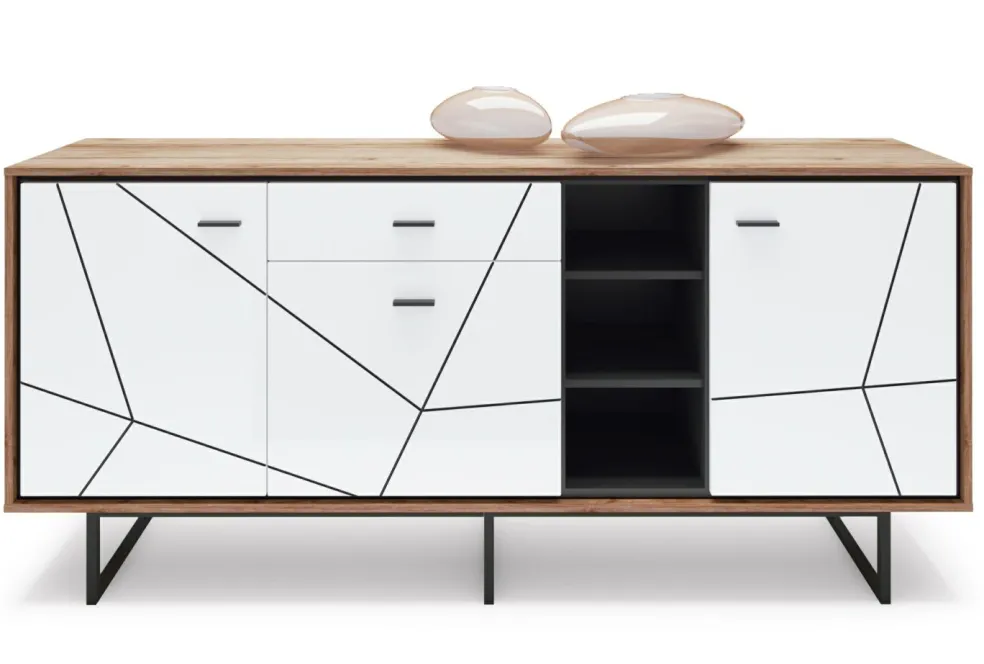 Façade: MDF PVC ton blanc brillant / MDF masse ton noir