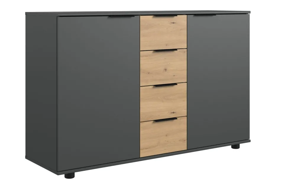 Caisson et façade : ton graphite avec contrastes décor chêne Artisan
