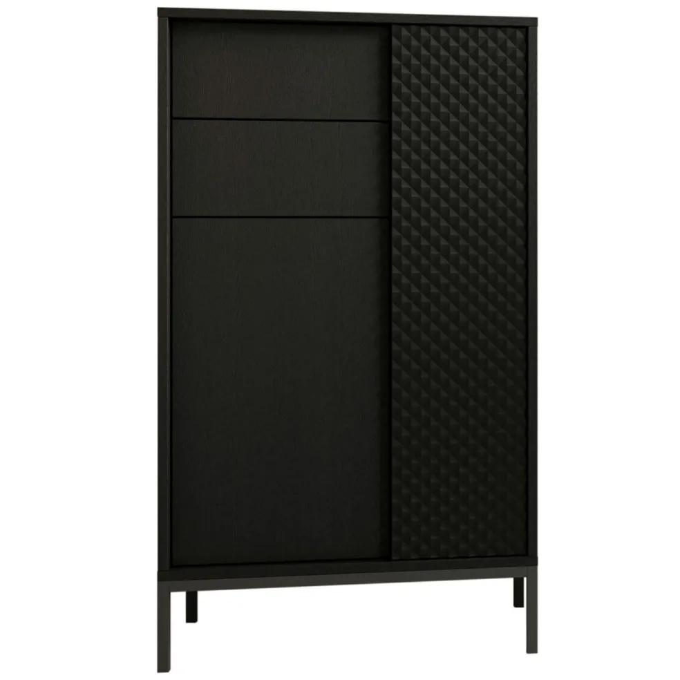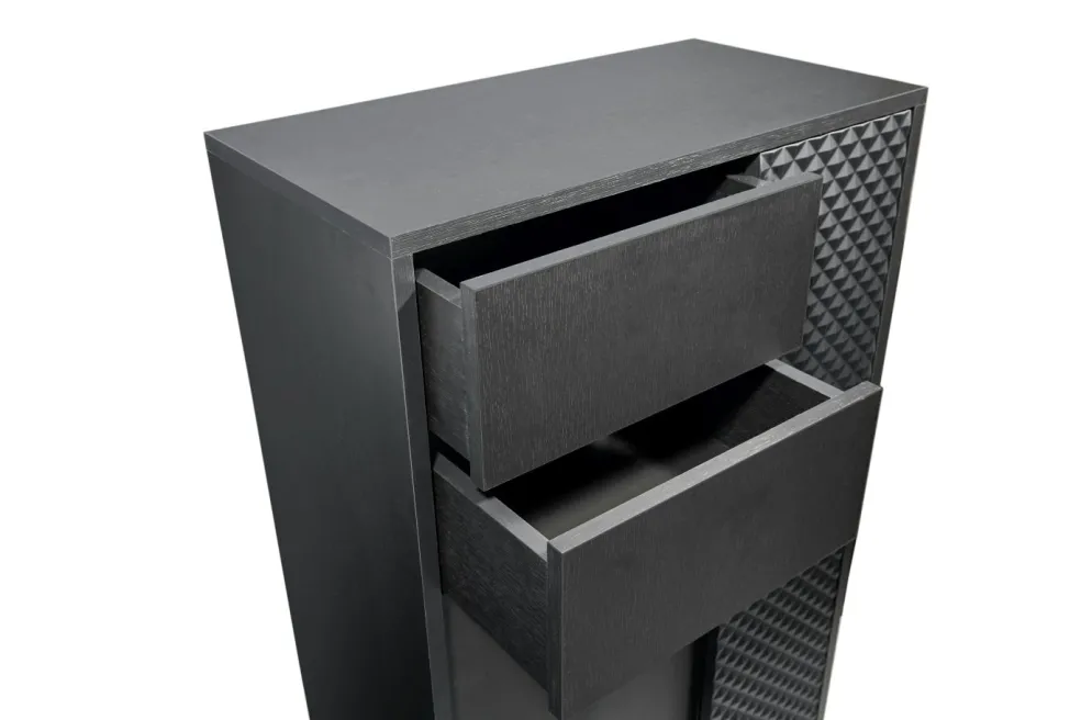 Façade: MDF (panneaux de fibres de bois de densité moyenne) thermoformé ton noir graphite, PPSM
