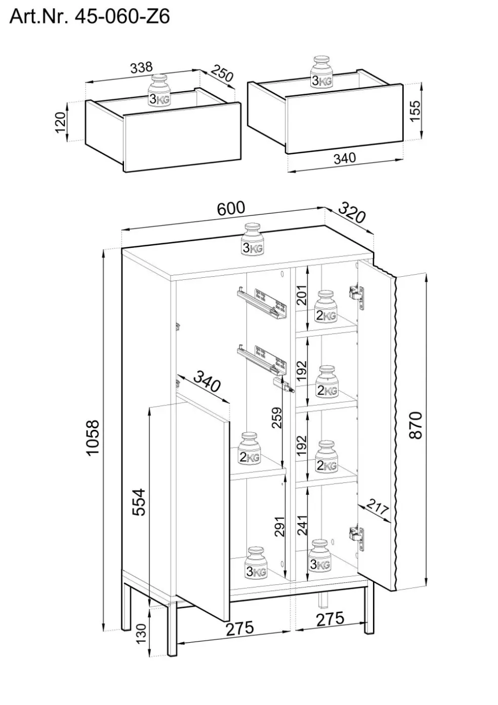 | Equipement armoires: | Tiroirs | ||