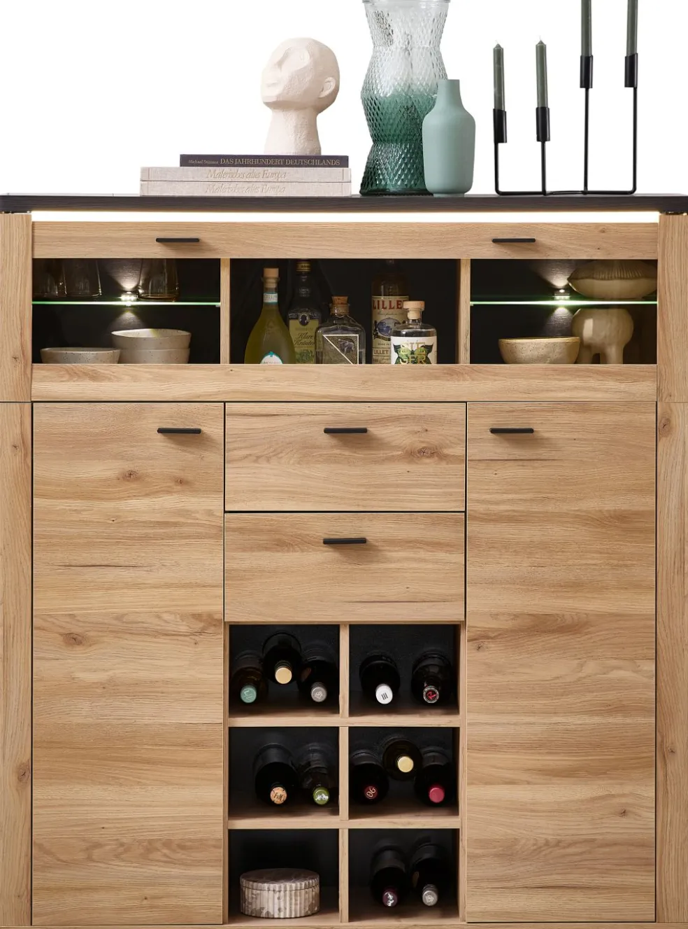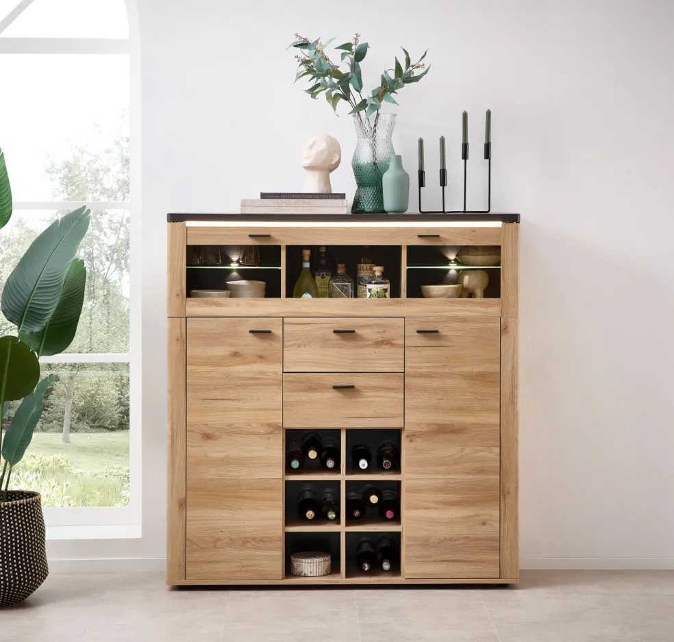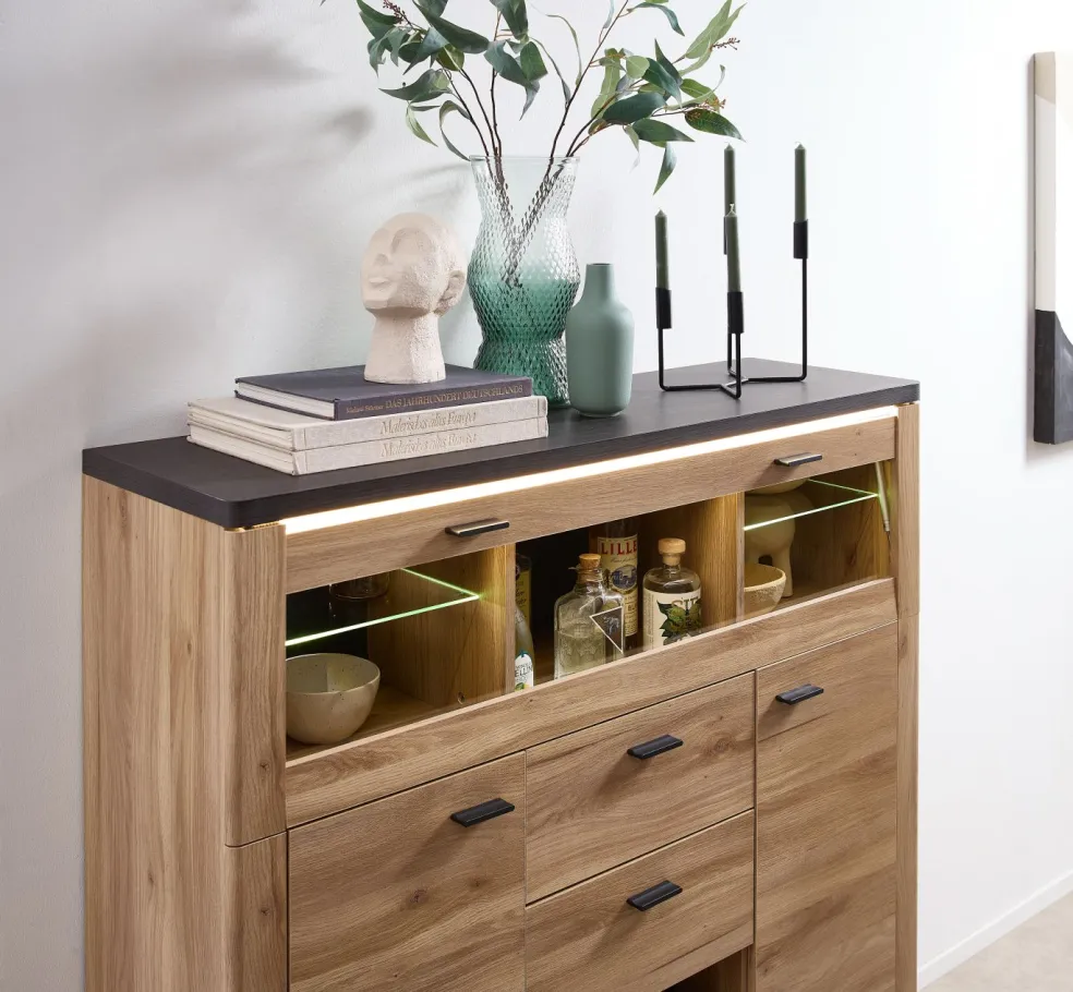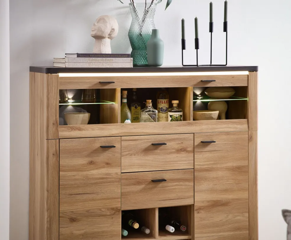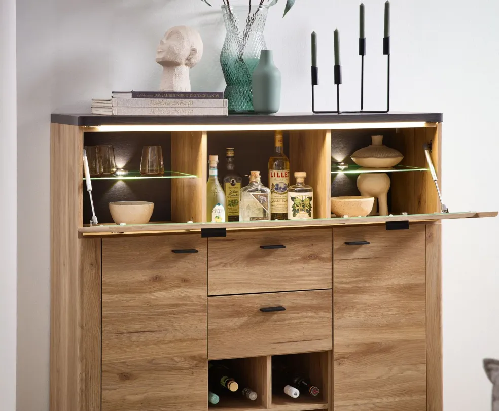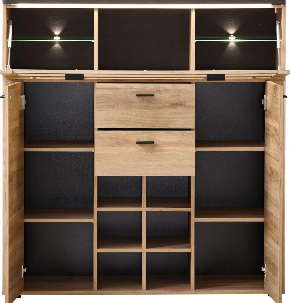 | Équipement Commodes Phono Bureau Étagère: | Abattant(s), Casiers ouverts, Portes, Tiroirs, incl. éclairage | ||