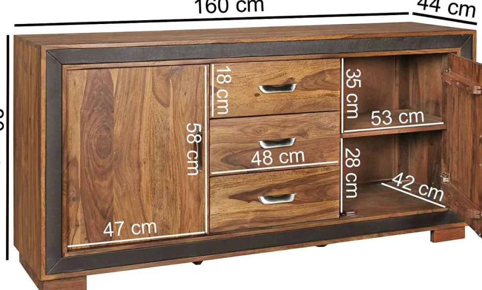 bois de sheesham massif (Inde) et détails en cuir synthétique noir 100% polyuréthane