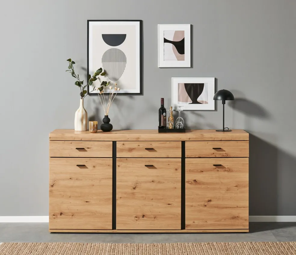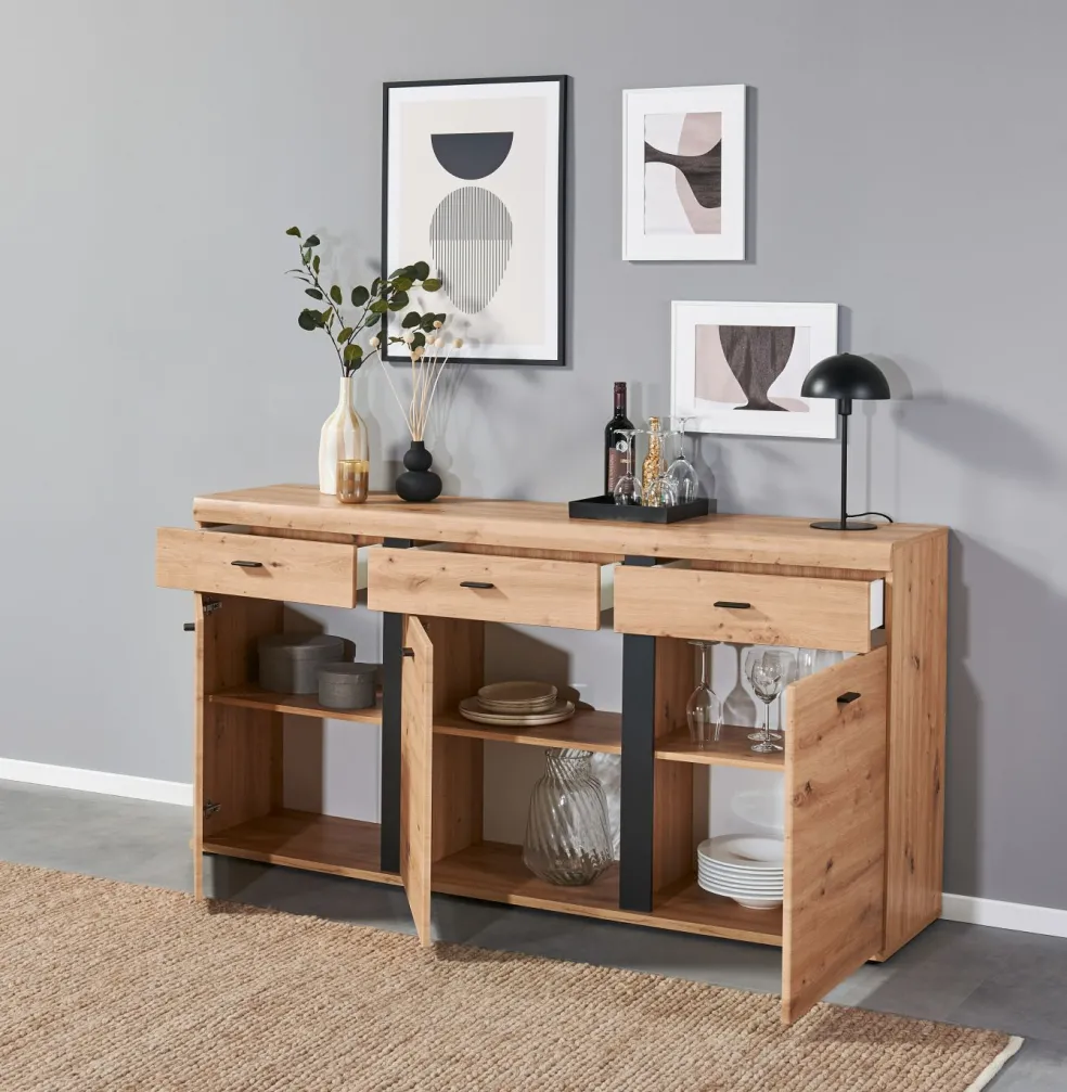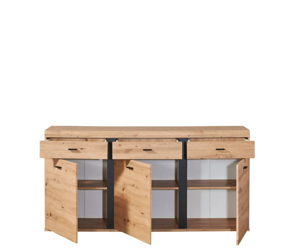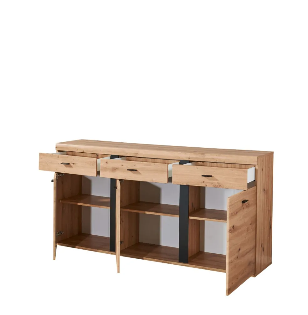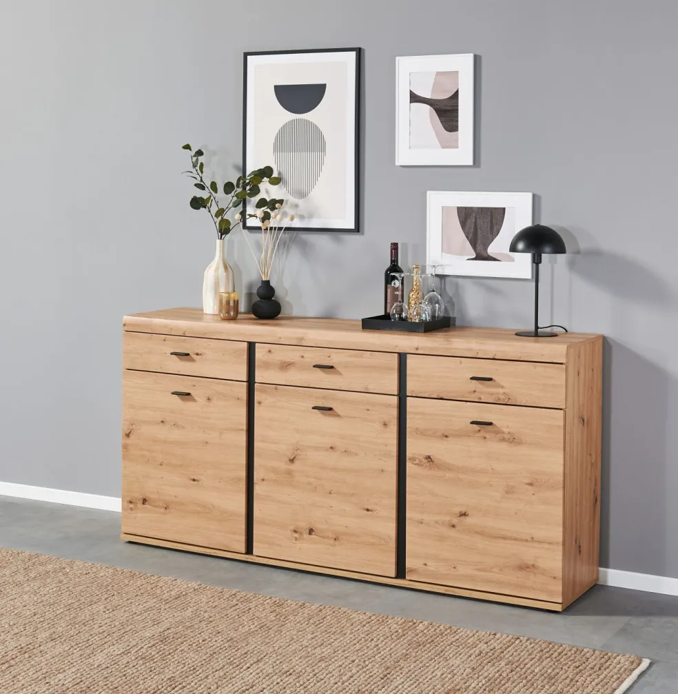 Façade: décor chêne Artisan, MDF (panneaude fibres de bois de densité moyenne) pelliculé avec contrastes ton noir (panneau de particules surfacé mélaminé (PPSM))