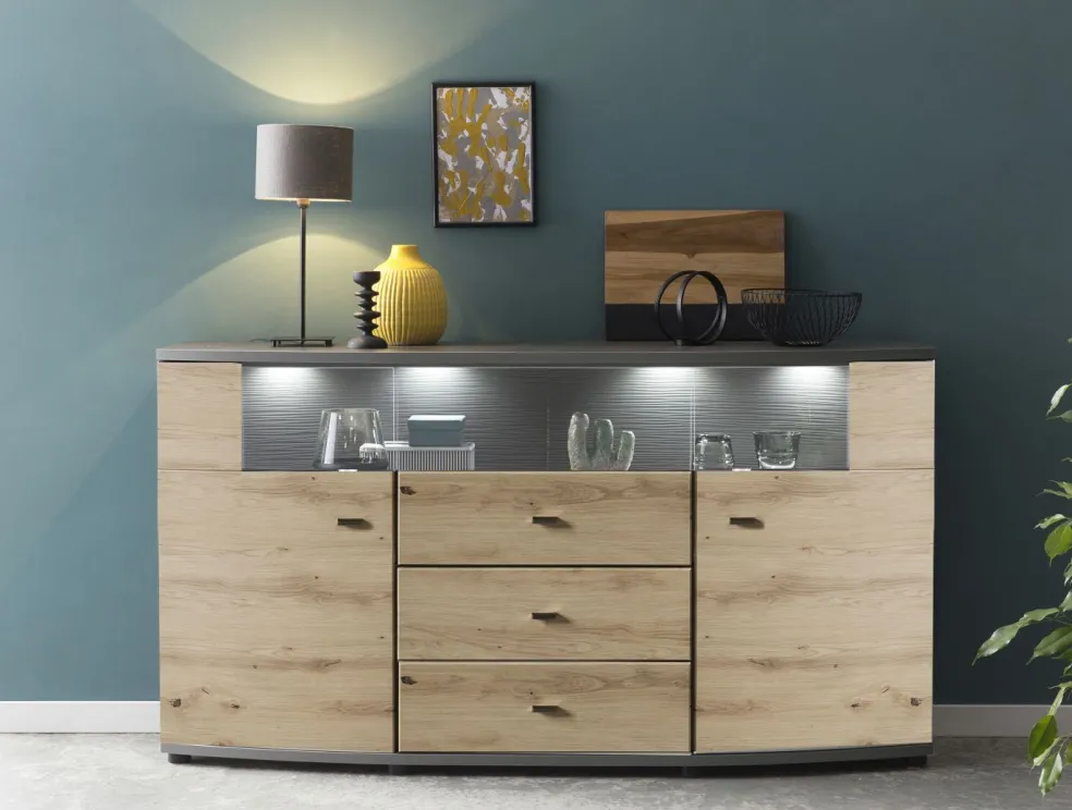 Caisson: contreplaqué décor chêne Artisan et contrastes ton anthracite