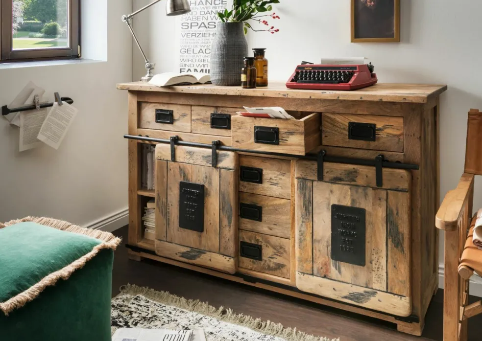 Caisson et façade : bois de manguier massif ( Inde), surface traitée aspect vintage