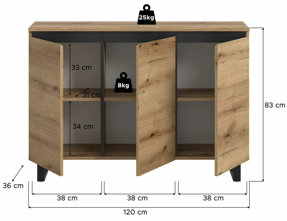 | Dimensions : | L/H/P env. 120/84/36 cm | ||