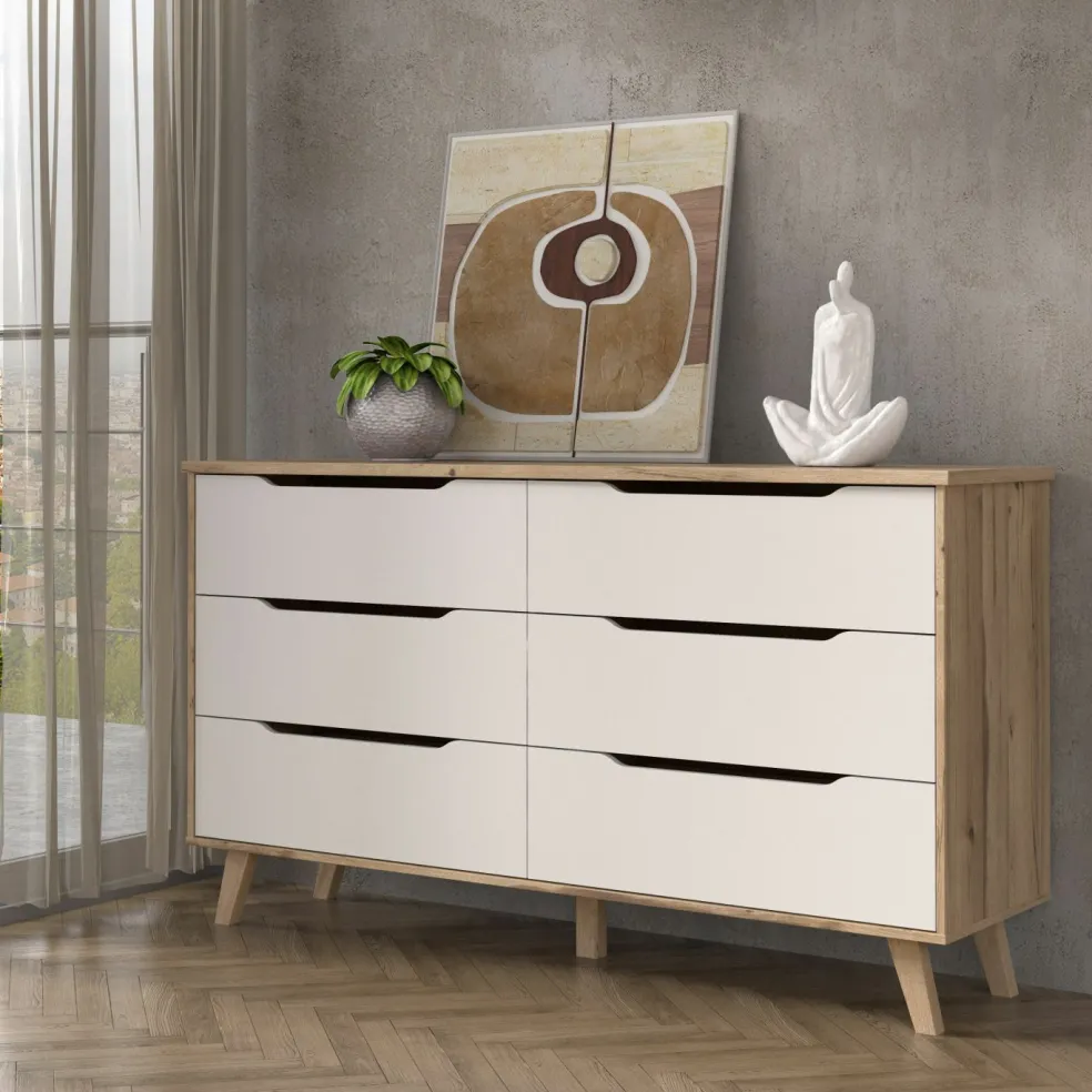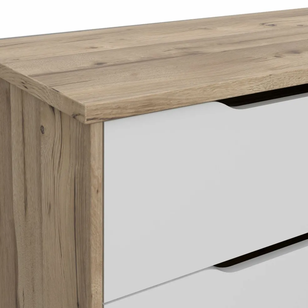 décor chêne planches de chêne et façades tiroirs ton blanc