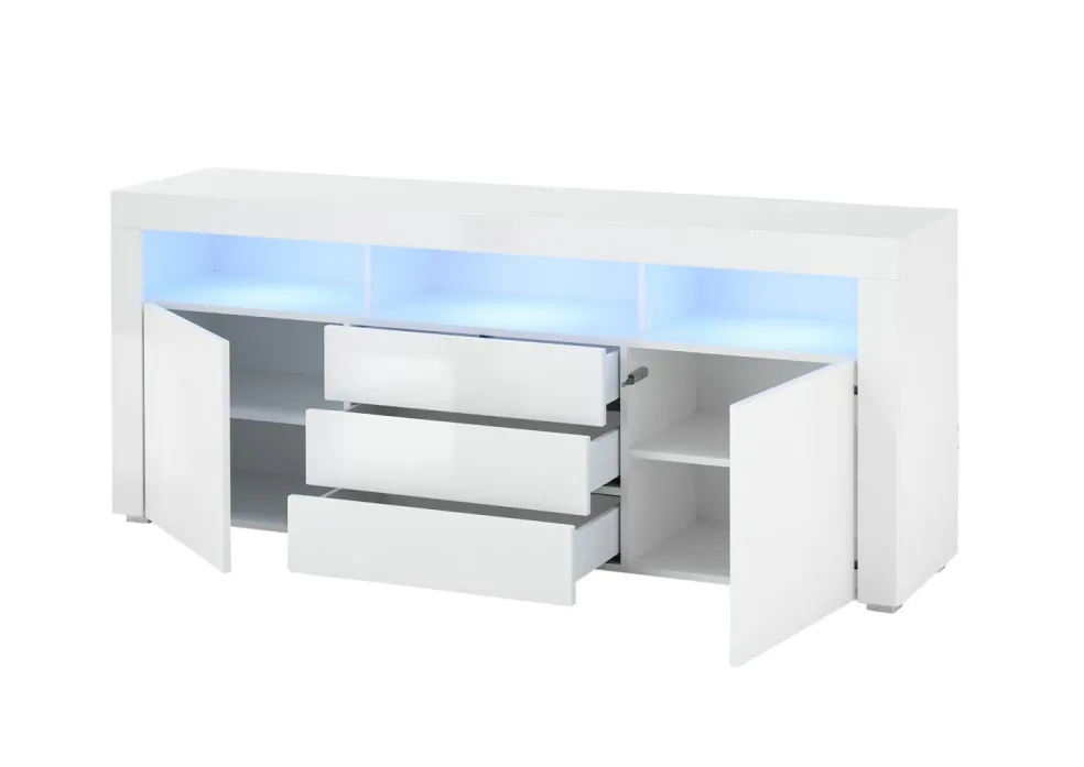 Façade: PVC ton blanc ultra brillant thermoformé / MDF (panneau de fibres de bois de densité moyenne) pelliculé