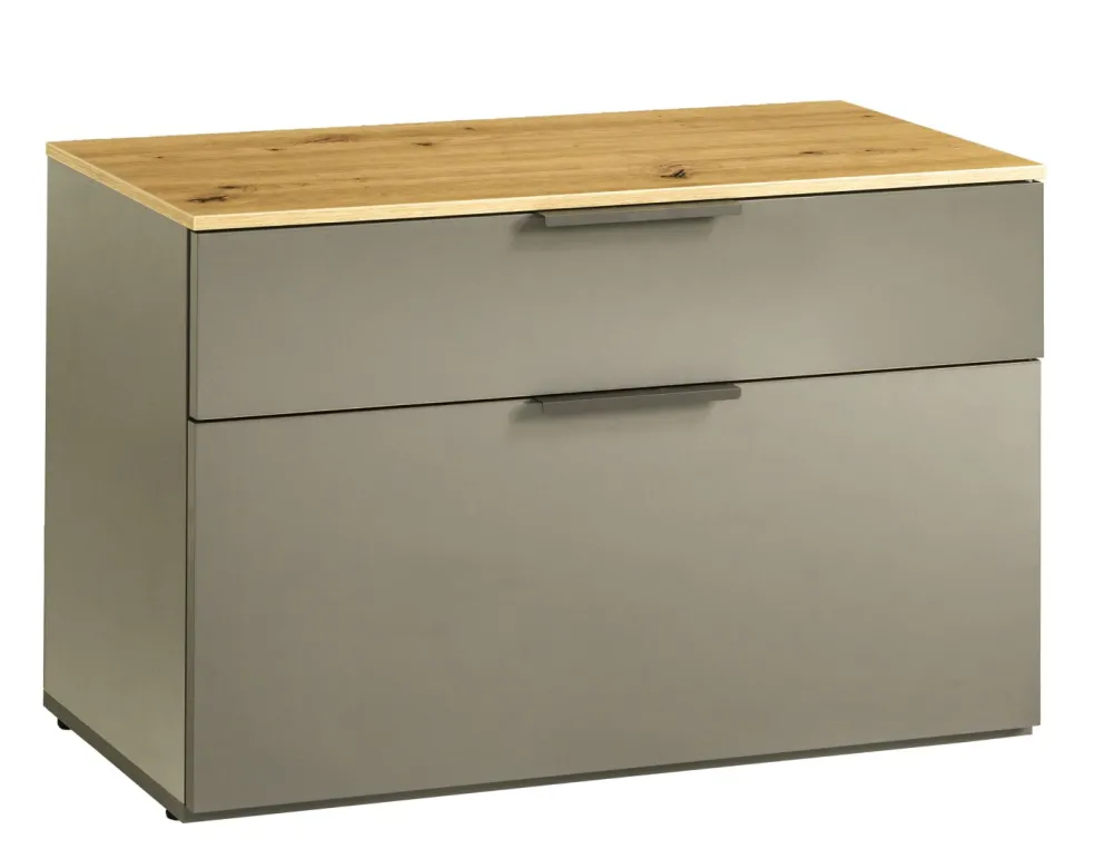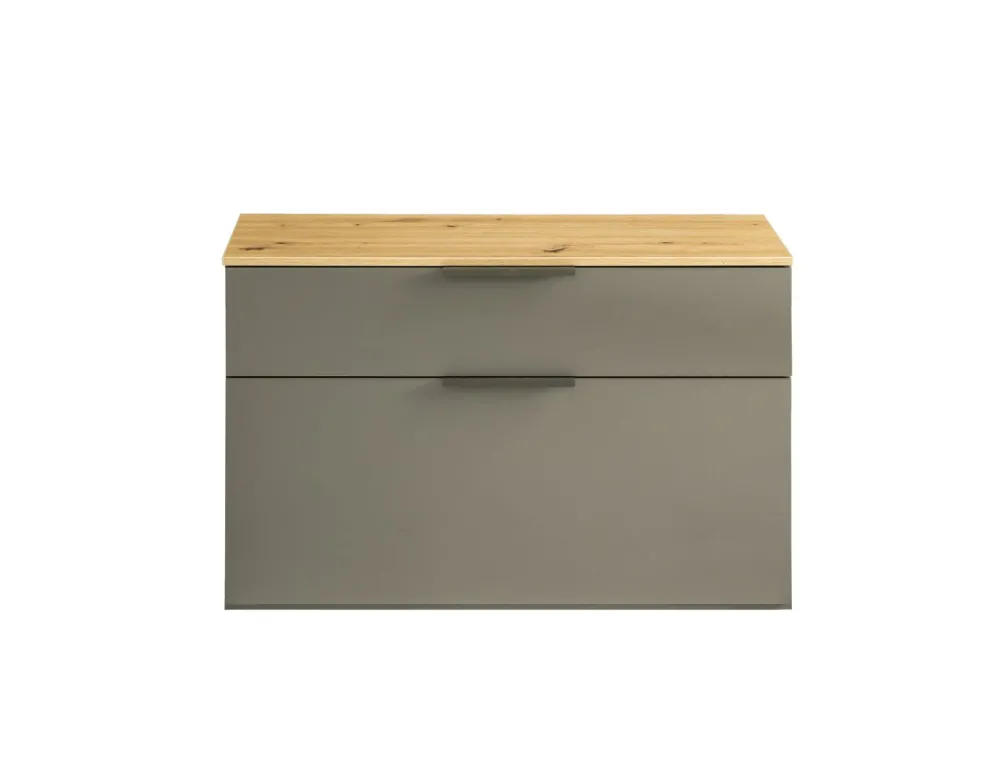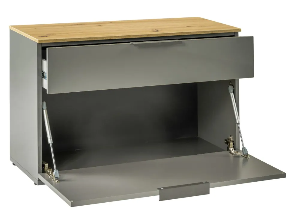 Caisson et façade: décor chêne Artisan et ton gris titane ultra brillant