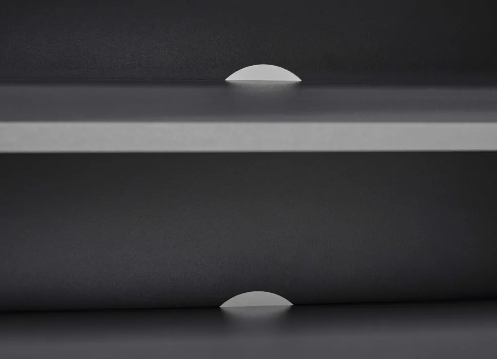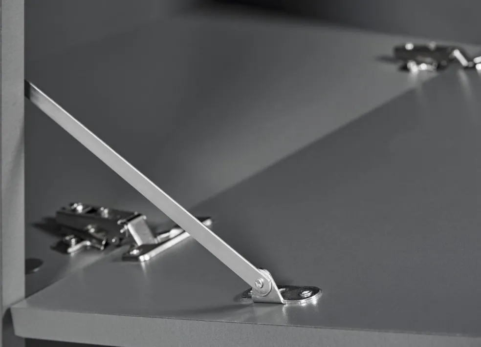Caisson et façade : en panneaux de particulessurfacésmélaminés(PPSM) robustes,ton gris graphite