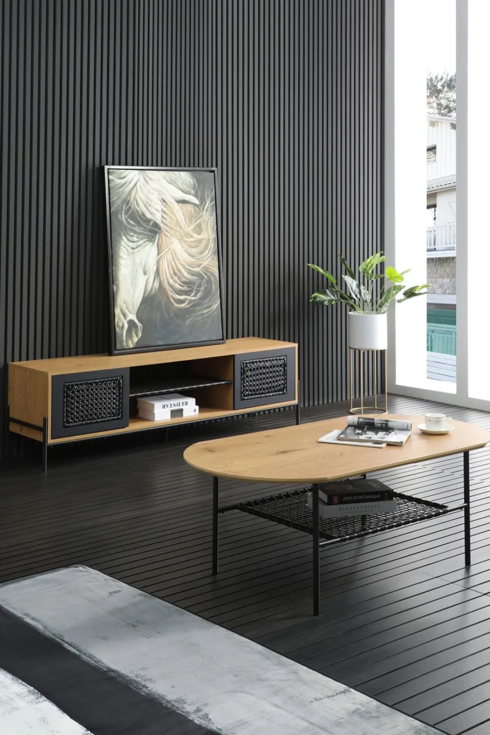 MDF (panneau de fibres de bois de moyenne densité) avec revêtement mélaminé ton naturel et ton noir