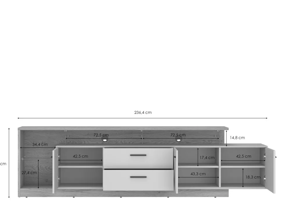 | Dimensions : | L/H/P env. 236,4/65,5/40 cm | ||