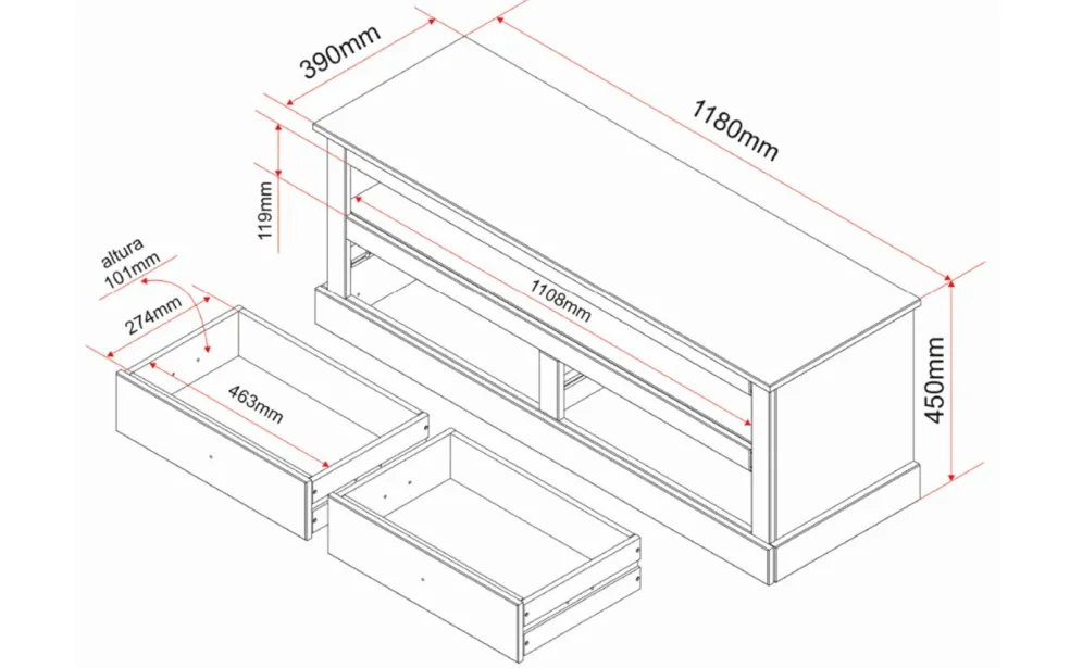 avec 2 tiroirs spacieux et une surface de rangement supplémentaire pour l’équipement sous le plateau supérieur