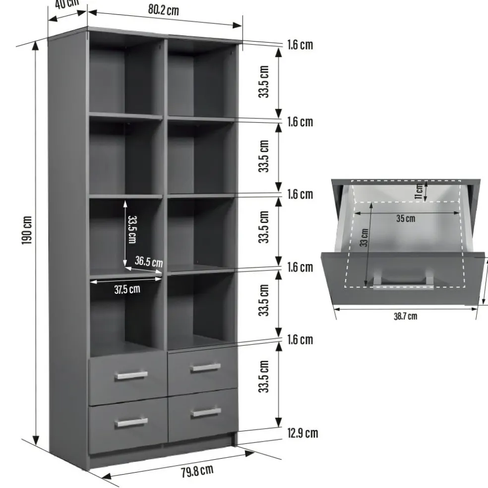| Dimensions : | L/H/P env. 81,5/191,2/40 cm | ||