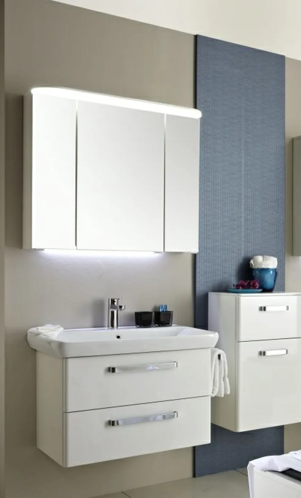* une armoire de toilette 3 portes, inclus : corniche lumineuse LED, L/H/P: env.85x74x17cm