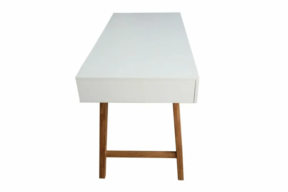 MDF (panneau en fibres de bois de densité moyenne) ton blanc et piètement en bois de chêne (Chine) laissé à l’état naturel