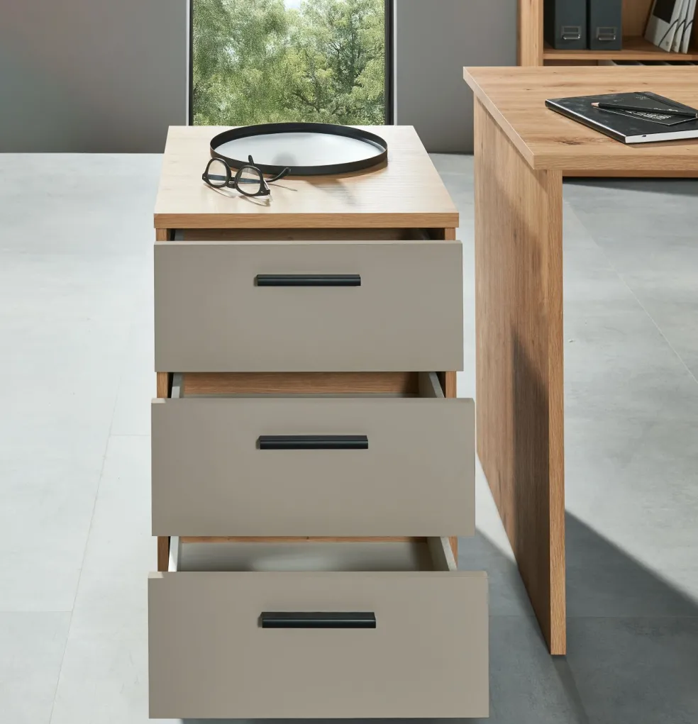 3 tiroirs avec fermeture amortie et coulisses sous tiroirs