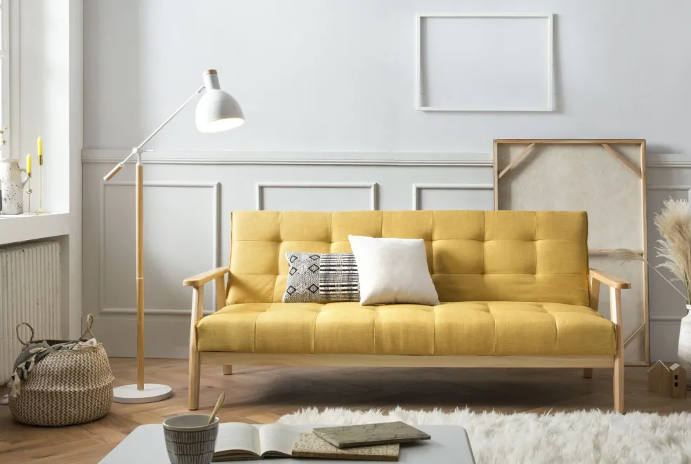 Revêtement : tissu chiné ton jaune moutarde 100% polyester
