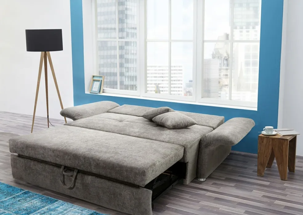 Canapé convertible confortable au design tendance et attrayant. Le garnissage en mousse polyéther de qualité garantit un confort idéal en position assise et allongée.