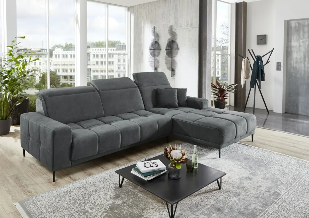 | Equipement canapés: | Appuie-tête(s), Méridienne à droite, Prolongement de l’assise manuellement, incl. coussins | ||