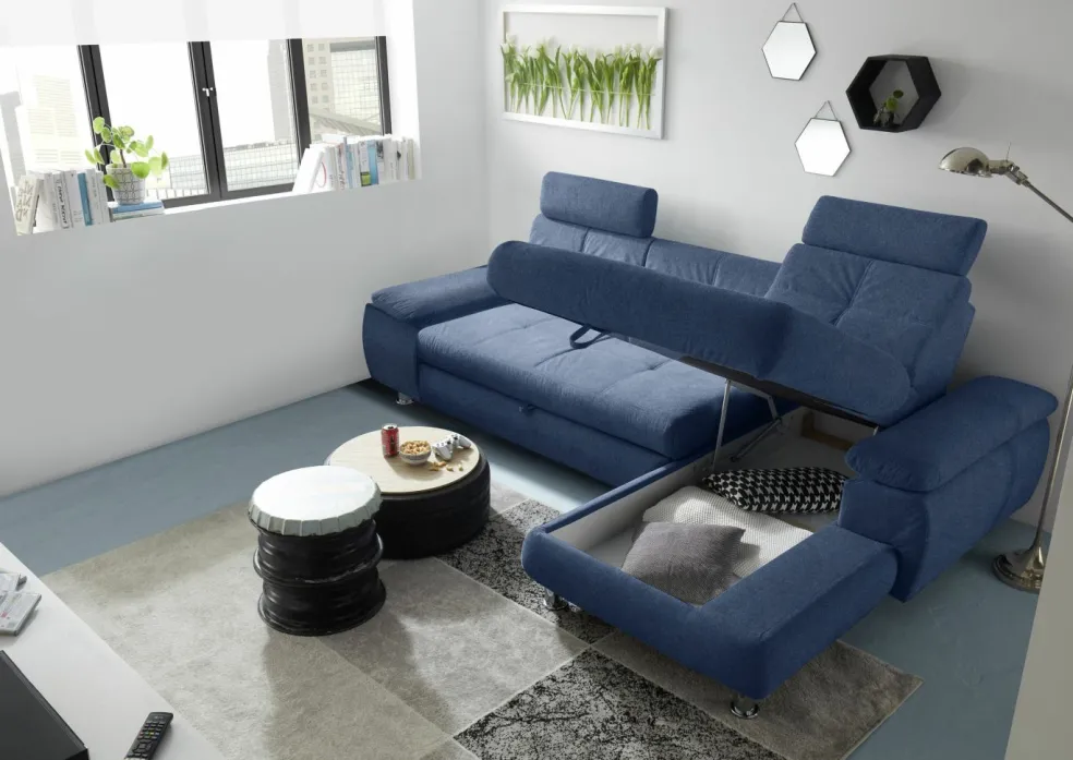 | Equipement canapés: | Appuie-tête(s), Dos habillé, Méridienne à droite, incl. coffre de lit | ||