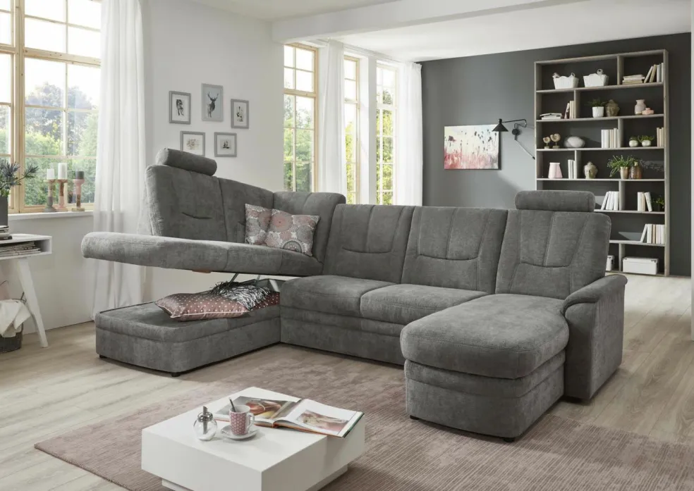 1 élément combiné 1 place à gauche, incl. pouf intégré avec coffre muni d’un couvercle rabattable