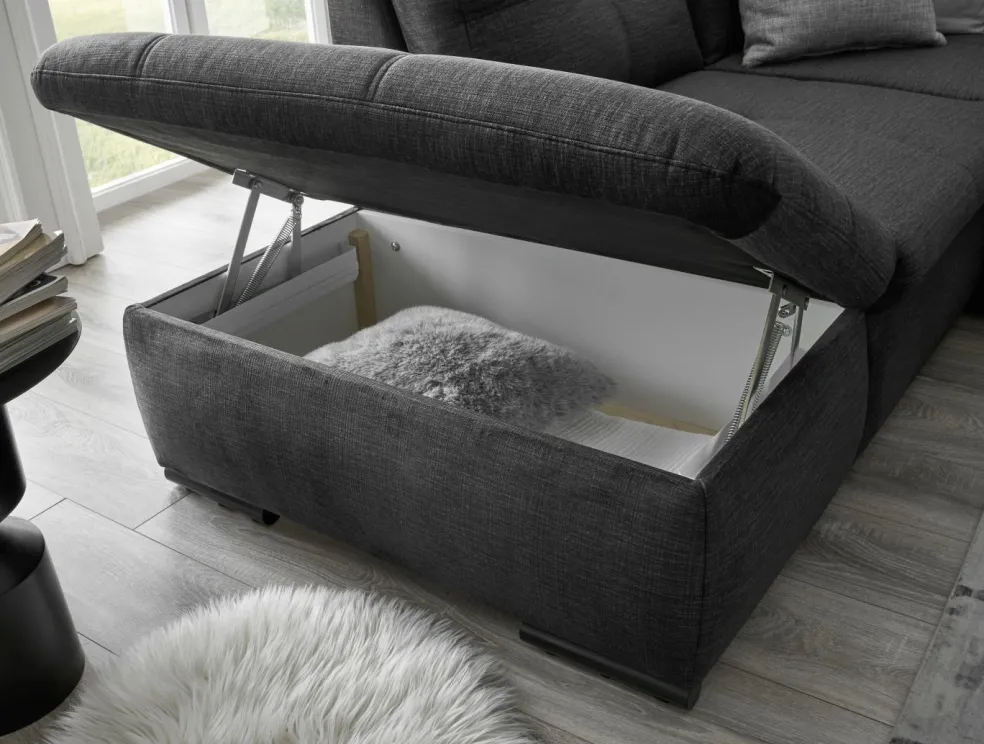 | Equipement canapés: | Appuie-tête(s), Dos habillé, Méridienne à gauche, incl. coffre de lit | ||